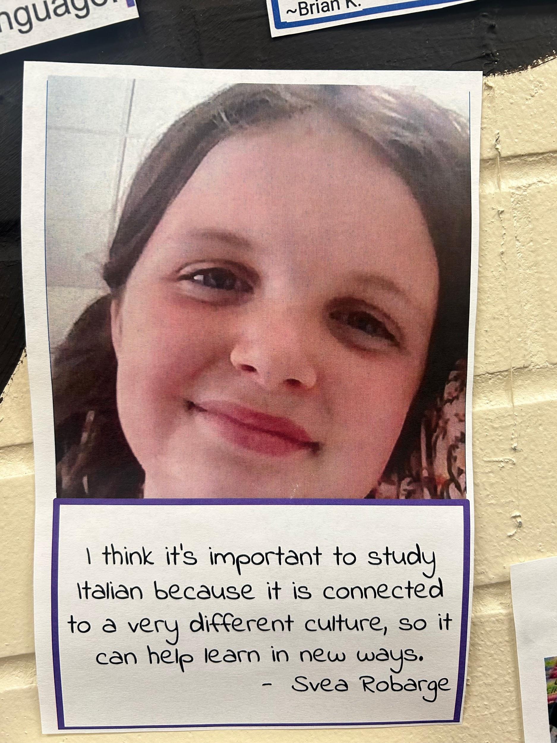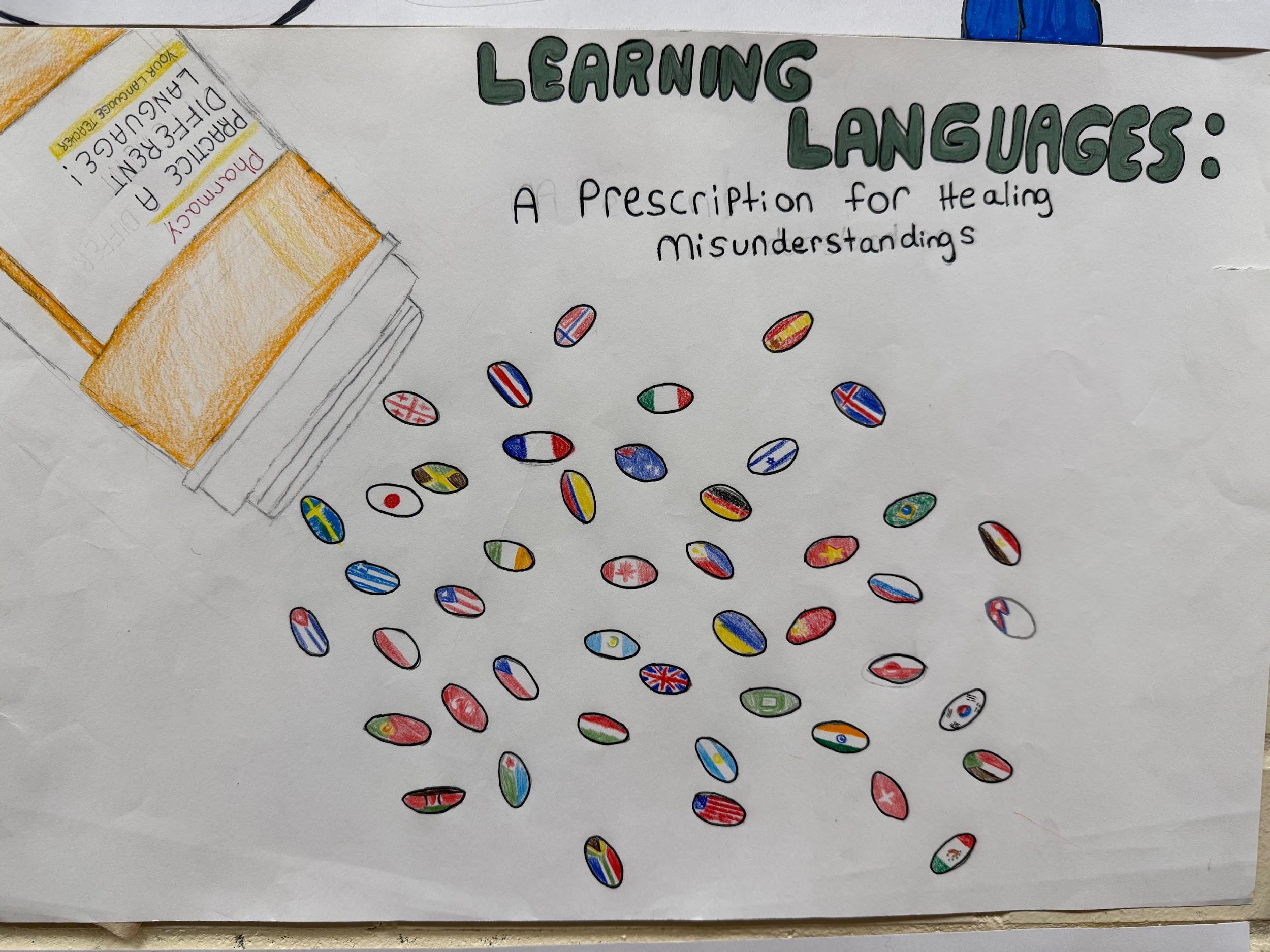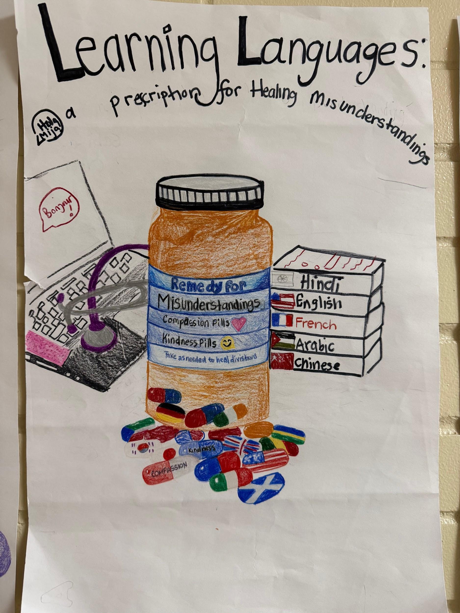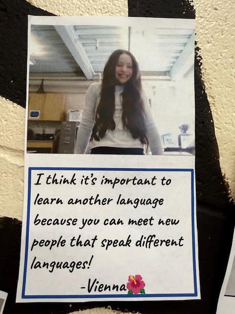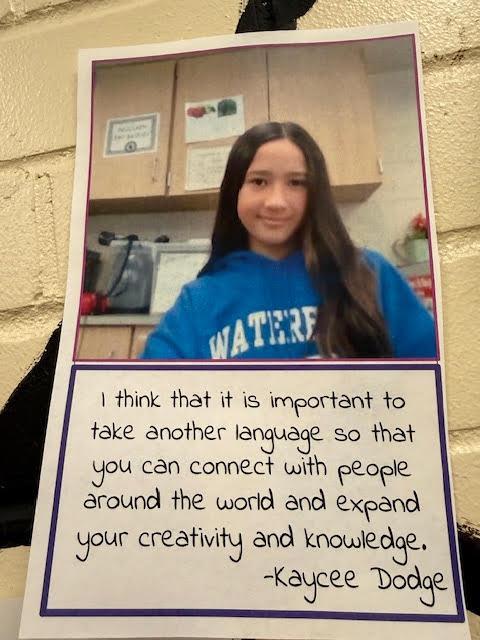 All eighth grade World Language students participated in the yearly poster contest. This year’s theme: Learning Languages: A Prescription for Healing Misunderstandings. Seventh grade students created word walls with their favorite word in French, Latin or Spanish. Sixth grade students shared their opinions about the importance of learning another language! We are proud of all our language students for their participation!