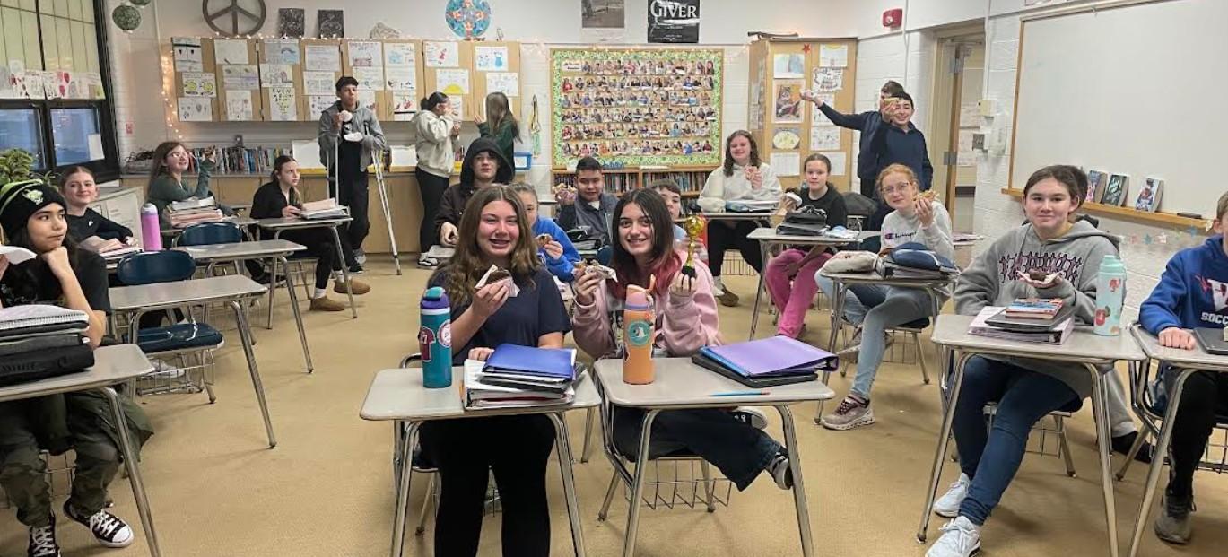 Congratulations to Mrs. Morosky’s 7th grade homeroom for winning World Language Week trivia. They were rewarded with doughnuts in homeroom! Congratulations!