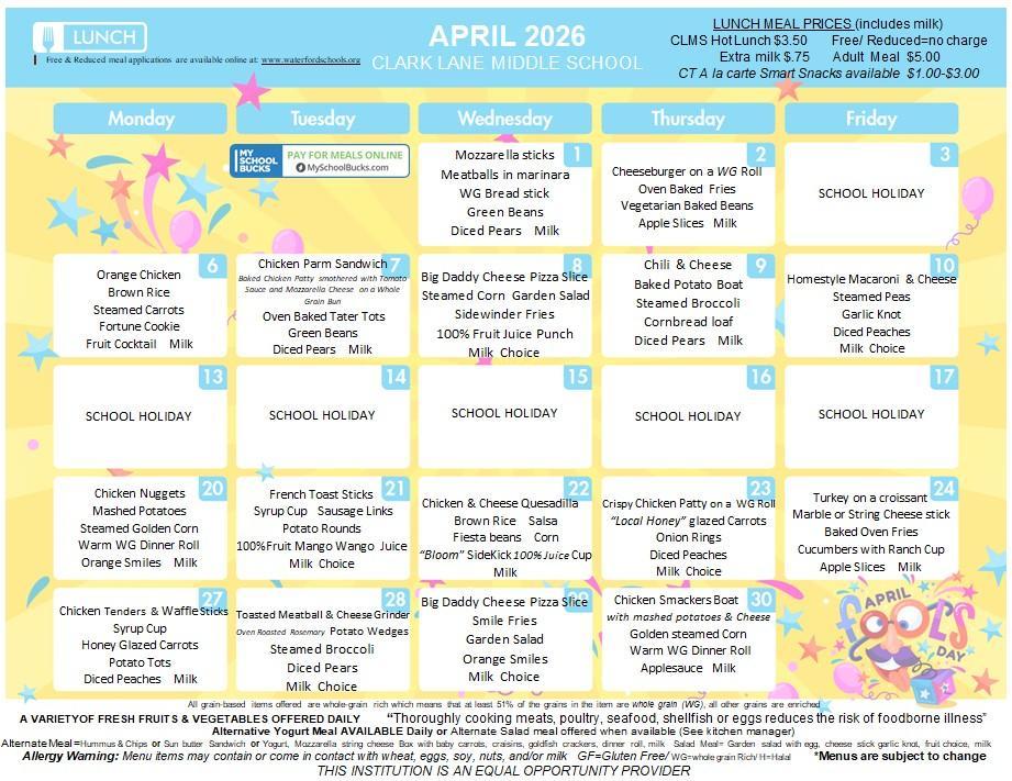 Happy Spring!! Wow - what a winter!!! We are so happy to have a number of fun and engaging events planned for your children in the next few months! Rec and Park is preparing our beautiful fields so students can get outside for PE, and our entire faculty and staff are excited for the dance, the Walkathon and many other celebrations! We are very proud of our students and the kindness they have shown on Career Day, at Trivia Night, during our school play Footloose, and on field trips such as Project Oceanology! Thank you all for your support and being there for Clark Lane!! Have a warm and wonderful Spring 2026!!