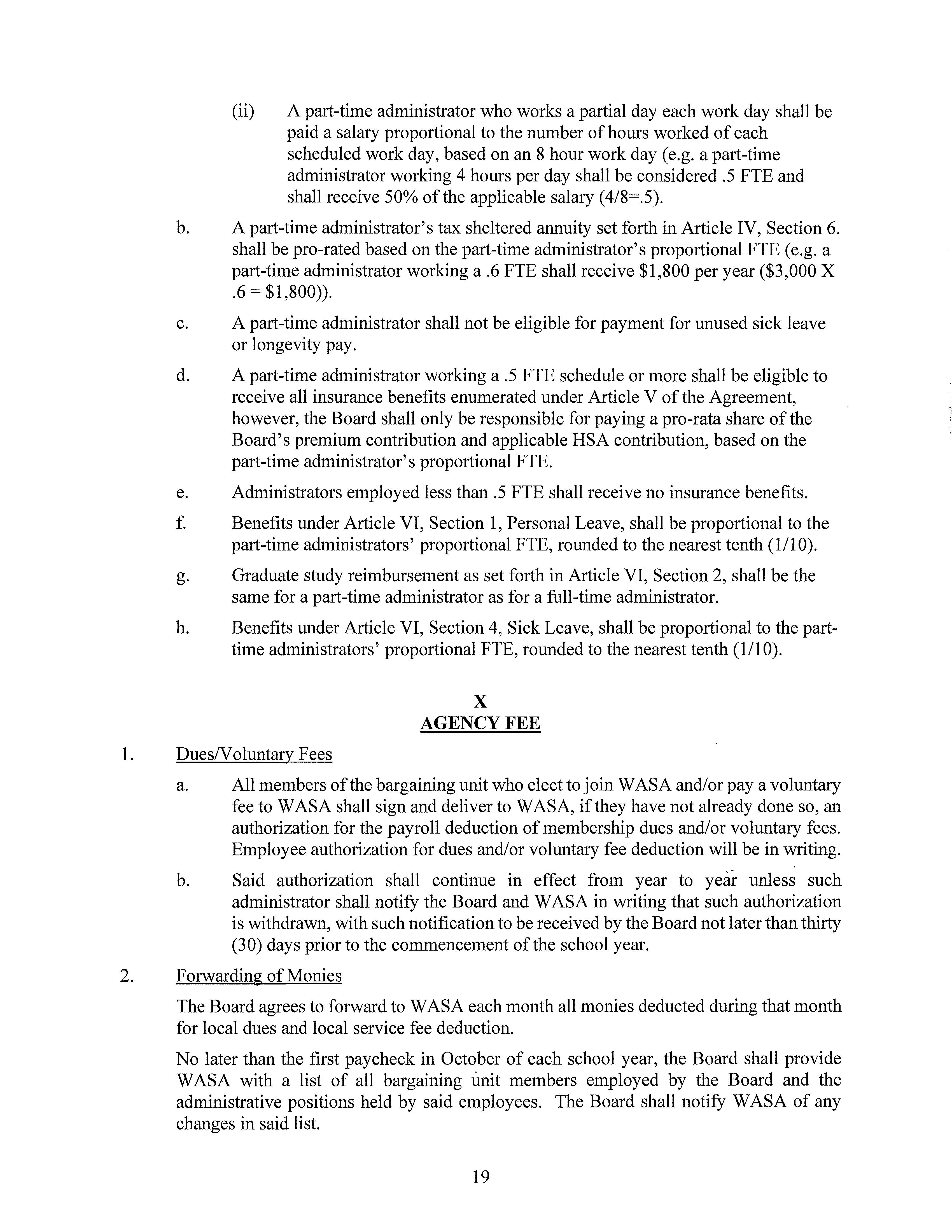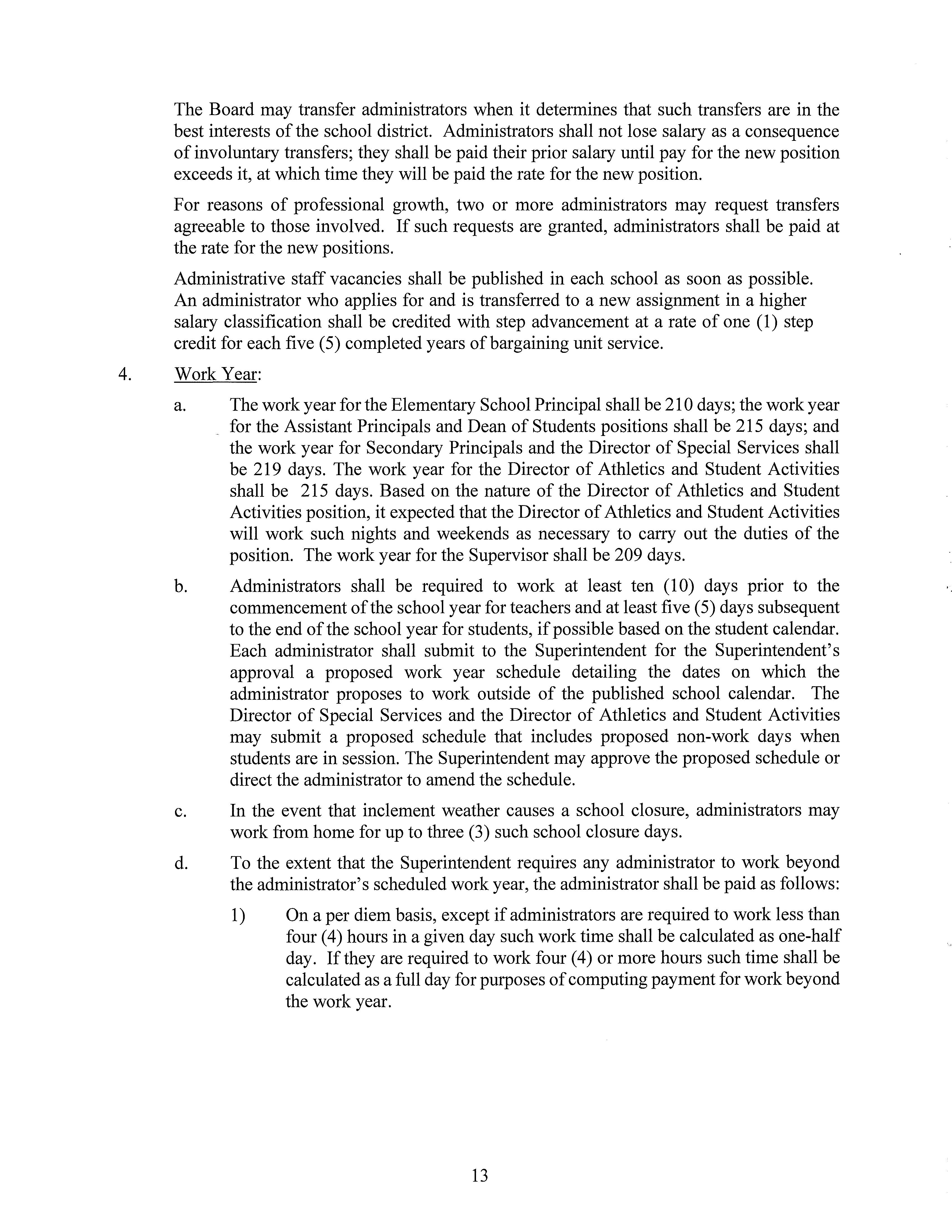 4. AdjustmentsinPay: AbsencesotherthanthosecoveredbythisAgreementshallrequirea deductioninpayof1/numberofdaysintheadministrator’sworkyear.