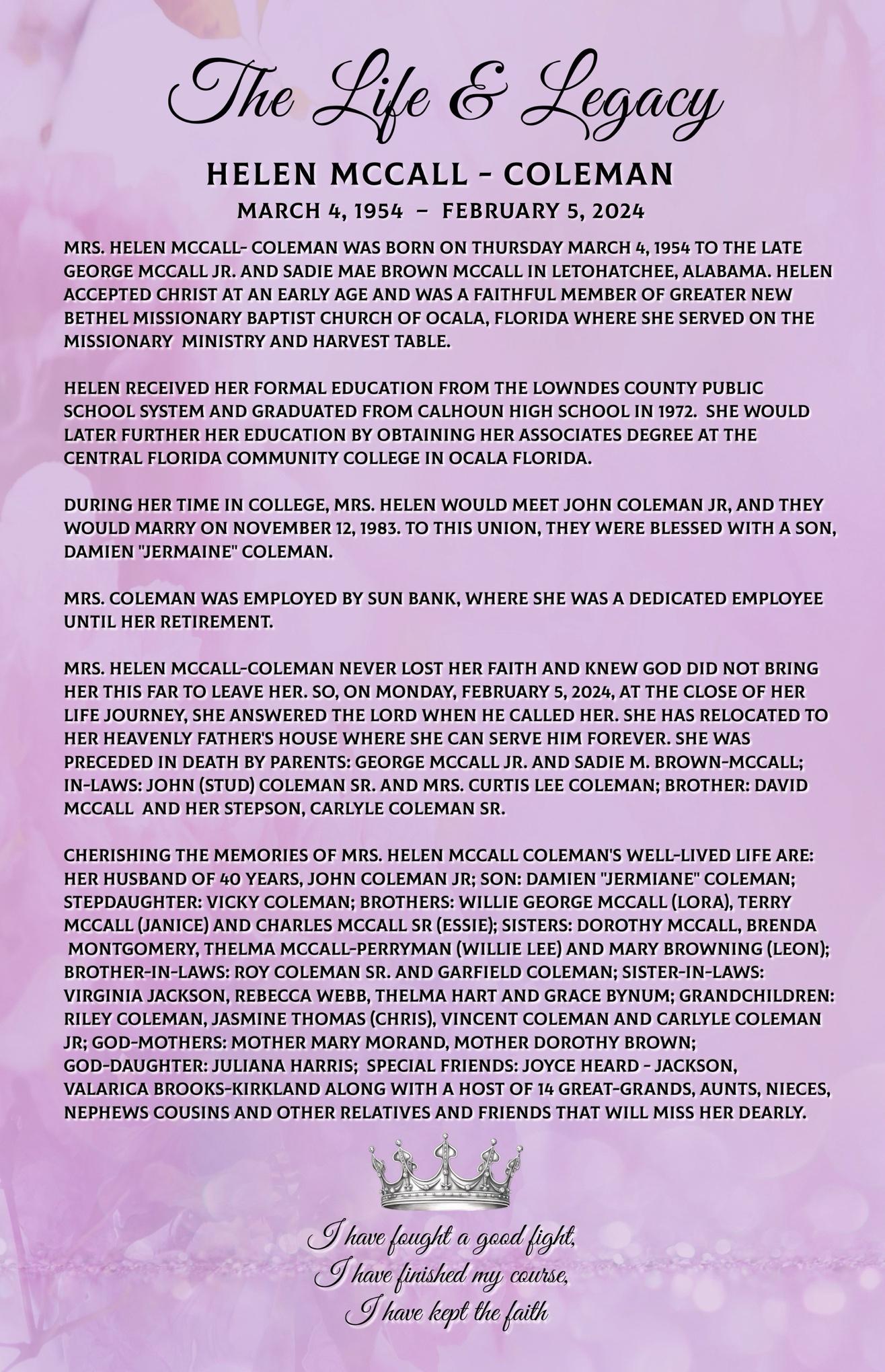 Helen Coleman (2024 Obituary)