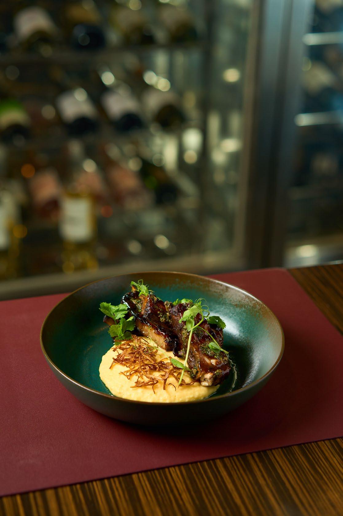 Braised tender lamb riblets, finished on the grill with smoky BBQ glaze, served with creamy polenta and chimichurri.