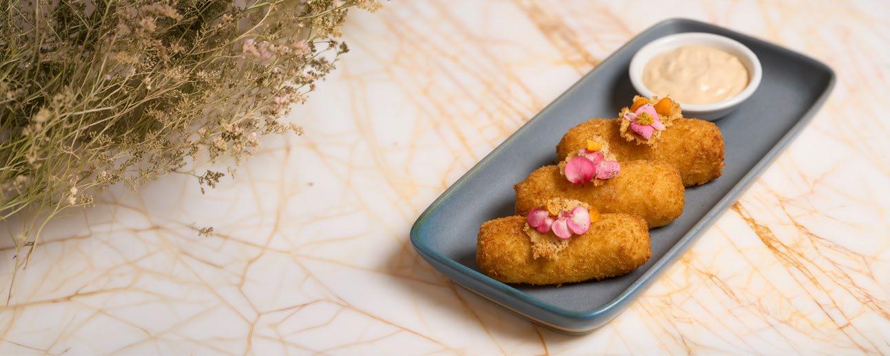 Golden, crispy croquettes filled with creamy bechamel, ham, and cheese. Served with tartar sauce.