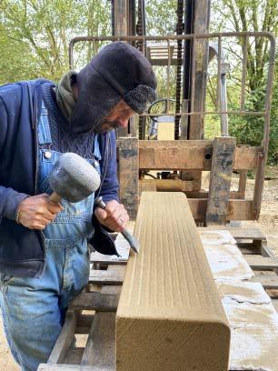 Many stones have crumbled and require replacement: traditional skills and methods are being used to great effect at Grinshill Stone Quarry, where masons are dressing a total of over 30 metres of large coping stones to replace broken ones.