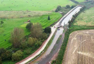 watertight. Leakage was identified at the base of the embankment and the test was terminated. The Phase 1A test area did hold water. Repairs to the channel bank in August appear to have been successful and there was no leakage past the embankment. The test area was filled three times. The water level dropped over time at approximately the same rate on each occasion, passing beneath the northern dam into the channel towards Crickheath Bridge. The results will be reviewed with CRT and the design and specification finalised with the aim of commencing