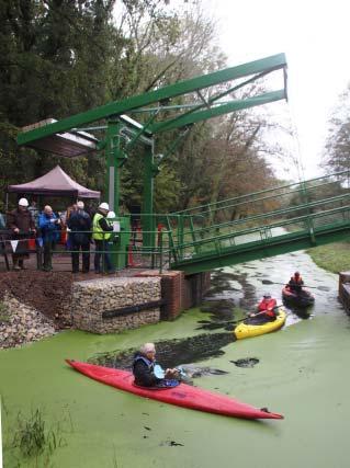 This completes the restoration of a 700 metre section of canal and construction of two lift bridges which means that the causeways that blocked the route of the canal have been removed.