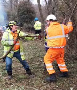 Regional mobile volunteer groups London WRG and Kescrg’s annual pre-Christmas working weekend was joined by WRG Forestry as well this year. Together they made a useful contribution to the Wey & Arun Canal Trust’s ongoing work to remove many canalside ash trees suffering from Ash Dieback Disease, as well as clearing undergrowth on the offside bank. They also marked the start of the WRG festive season with a Christmas party, themed to commemorate the Disney 100th anniversary. Can you work out what the costumes are?