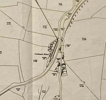 1926 Map of Crickheath Wharf: the canal runs from north east to south west; the tramway can be seen coming in from the north west
