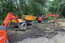 Regional group NWPG report from the first of two weeks of intensive machinery operations laying a new towpath north of Loxwood