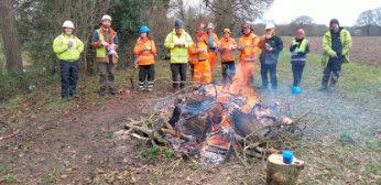 Shropshire Union Canal Society February 2025 work party report: “During this time 170 metres of channel has been cleared of scrub, 720 hedging whips have been planted, a further 74 metres of hedge has been laid, and bonfires have kept us warm during some very chilly weather”. Said Tom Fulda, restoration project manager, “And although spared the severe frost and ice of the January work party the weather on this occasion was still ‘uninviting’: damp and grey with a bonechilling easterly breeze”.