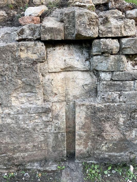 Repointing continued in the lower level of the scaffolding while outside Andy & Sandy cleared a route across the bywash to the large heap of stones to be collected later by Gordon.
