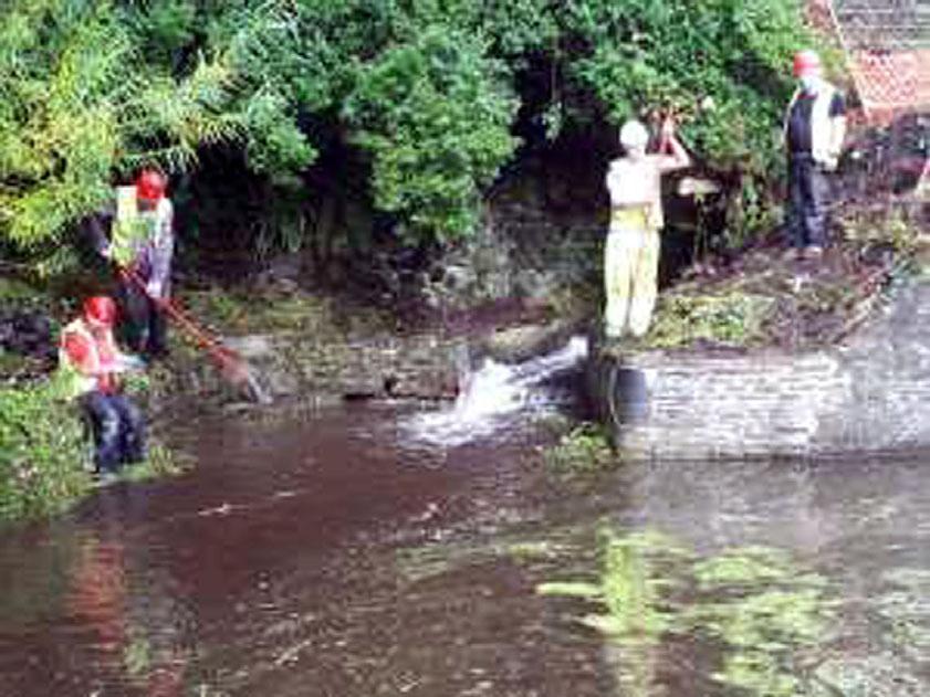 The final clearance of the by-wash exit. From left to right: Liz, Andy, Sandy & Peter survey the weed free oasis.