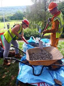 The volunteers pitched in to relay a gravel and membrane layer to stop the vegetation returning.