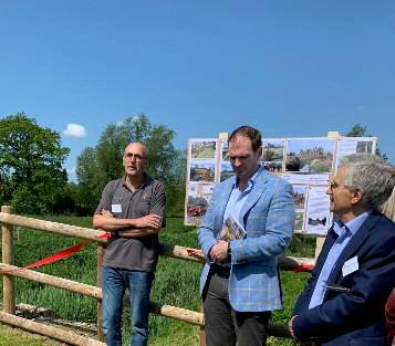 On a glorious summer’s day, Saturday 20th May, a crowd of 75 watched as the guest of honour, local MP Dr Dan Poulter, cut the red ribbon to declare the new footbridge over the River Gipping at Baylham officially open. The Chair of the Trust, John Warren welcomed Dan Poulter and presented him with a copy of the Trust’s new book ‘The Ipswich to Stowmarket Navigation’ about the history of the Gipping and congratulated the Trust volunteers.