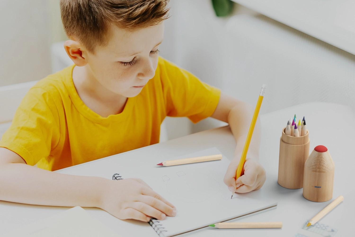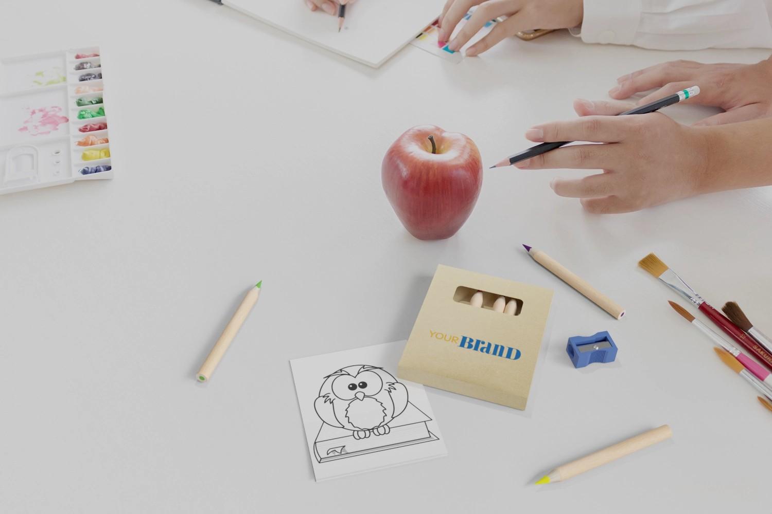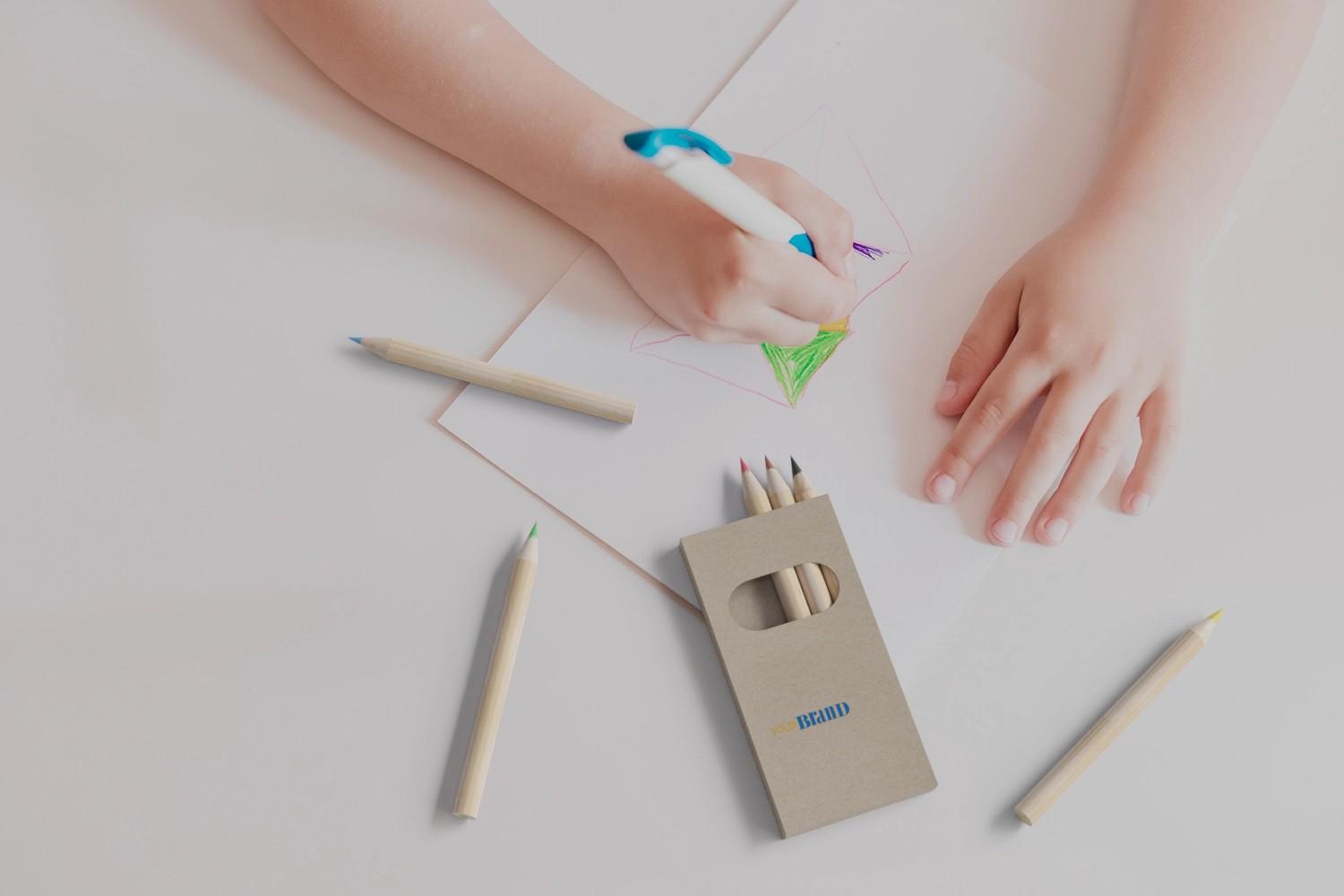 Colouring set with 6 pencils made of poplar wood. Delivered with a manual in a kraft paper box. Pencil size: 87 x 7 mm. Warning! Not suitable for children under three years. Small parts. Choking hazard. Wood.