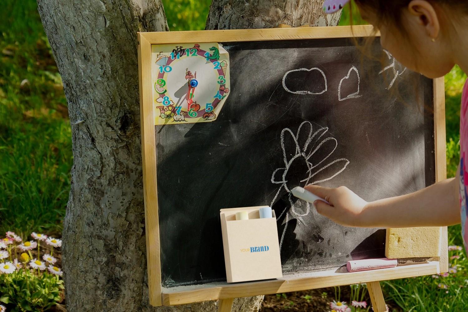 4 coloured pieces of chalk in a paper box. Decoration not available on components. Paper.