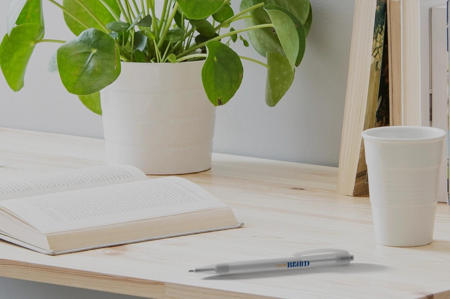 Ballpoint pen with the barrel, clip, and tip made from recycled plastic. Ink colour: Blue. Writing length: 3000 metres. Nib size: 1.00 mm. Made in Germany. Recycled Plastic.