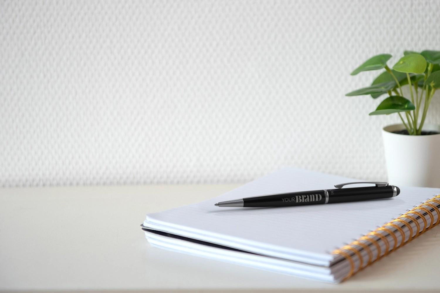 Stylus ballpoint pen with twist action mechanism. ABS Plastic.