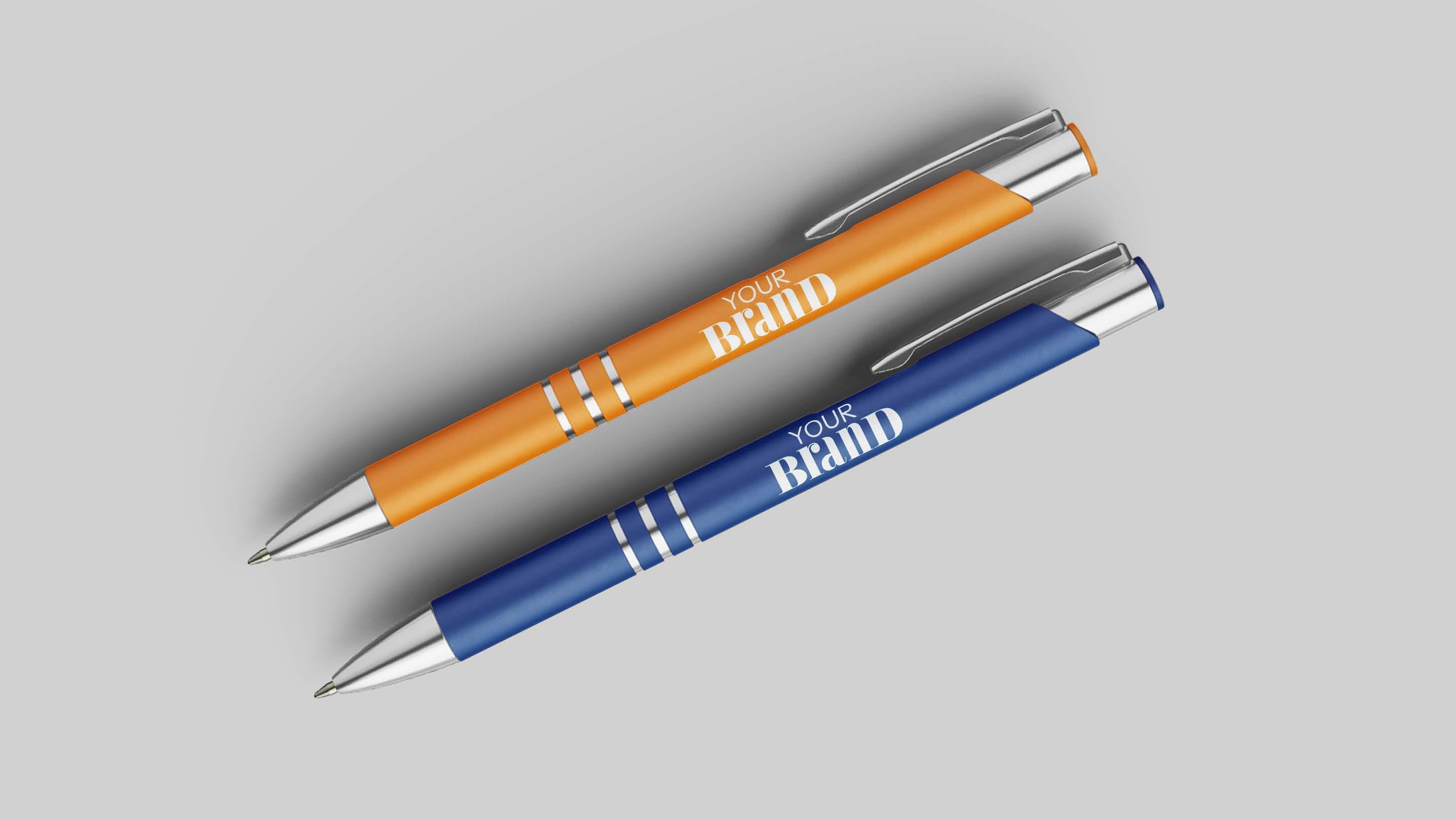 Stylish click action mechanism aluminium ballpoint pen with soft-touch coating. When laser engraved the shiny chrome underlayer of the pen will appear. The extensive and popular Moneta range is available in many different styles and finishes. Aluminium.