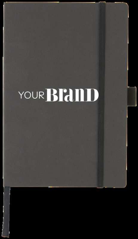 Imitation leather A5 (14.2 cm x 21.4 cm) notebook (leatherette) with elastic band, ribbon marker, pen loop and accordion back pocket. Includes 96 sheets of lined cream paper in 80 g/m2 and is offered in a Journalbook white sleeve. Leatherette paper. FSC Mix Credit P7.1 CU-COC-877277.