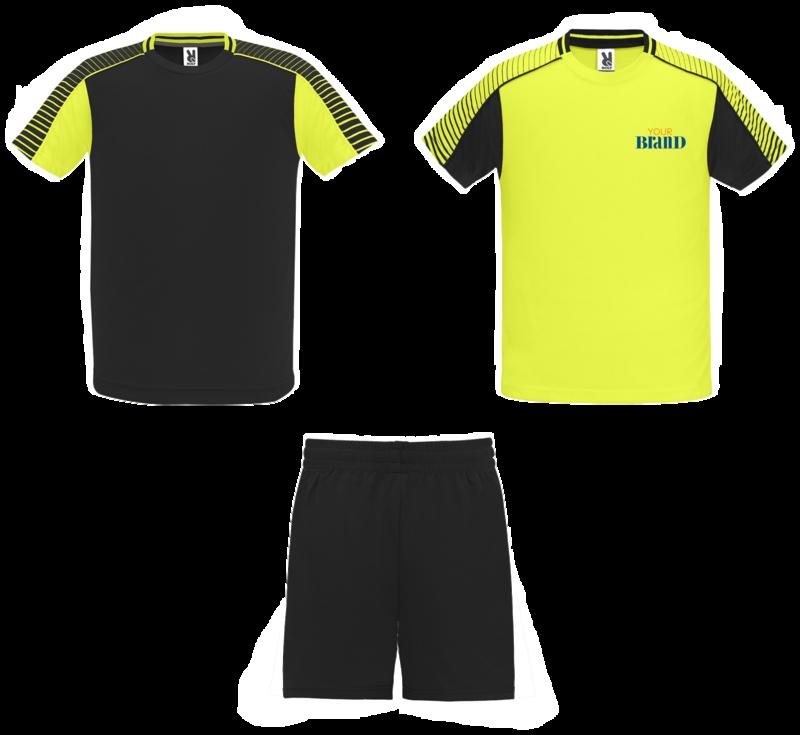 Set consists of 2 t-shirts and 1 pair of shorts. The colour of the second t-shirt is designed in the opposite way of the first one. Technical and breathable fabric. T-shirts with printed semi-raglan sleeves. Crew neck with tricot on the back. Elastic waistband in shorts with matching inner drawcord with security stitching.