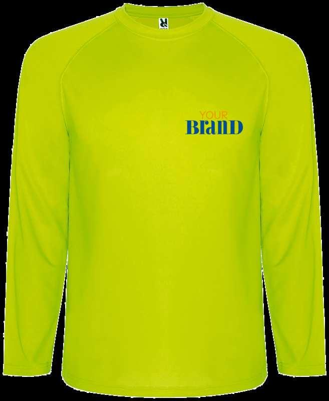 Technical long-sleeve raglan t-shirt . Matching overlock in sleeves (without side seams). Covered seams in collar. Breathable easy-wash and dry fabric. Removable label. Piqué knit of 100% Polyester, 150 g/m2.