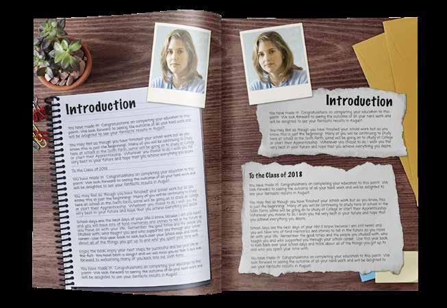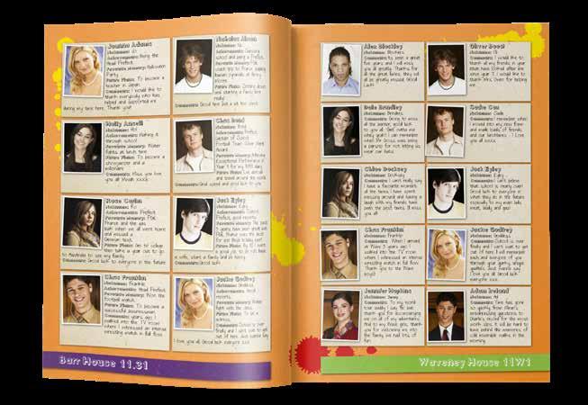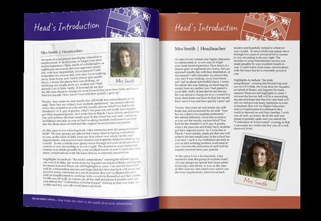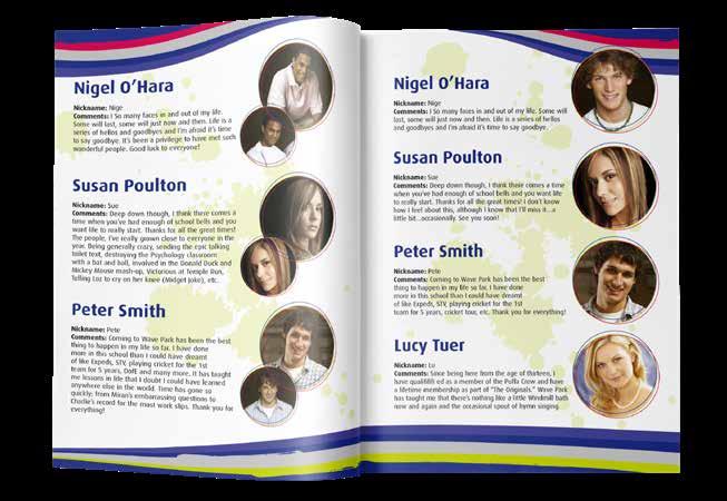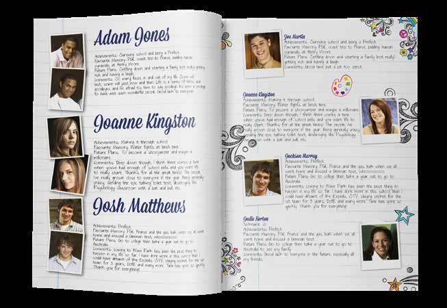 We see a lot of variation here, but a typical yearbook for a Year 11 group would have a few pages of introductions, 8-12 profile entries per page, a few feature pages and around 10-12 photo montage pages, bringing a typical book out between 40 and 50 pages. For year 13 groups page numbers will probably be slightly lower due to smaller groups, although we would typically see 4-8 profiles per page. Of course you can have as many pages as you like with the Terabook package - we’ve produced books with over 200 pages before. For Megabook and Gigabook packages the number of pages is dictated by the package structure and the size of your year group.