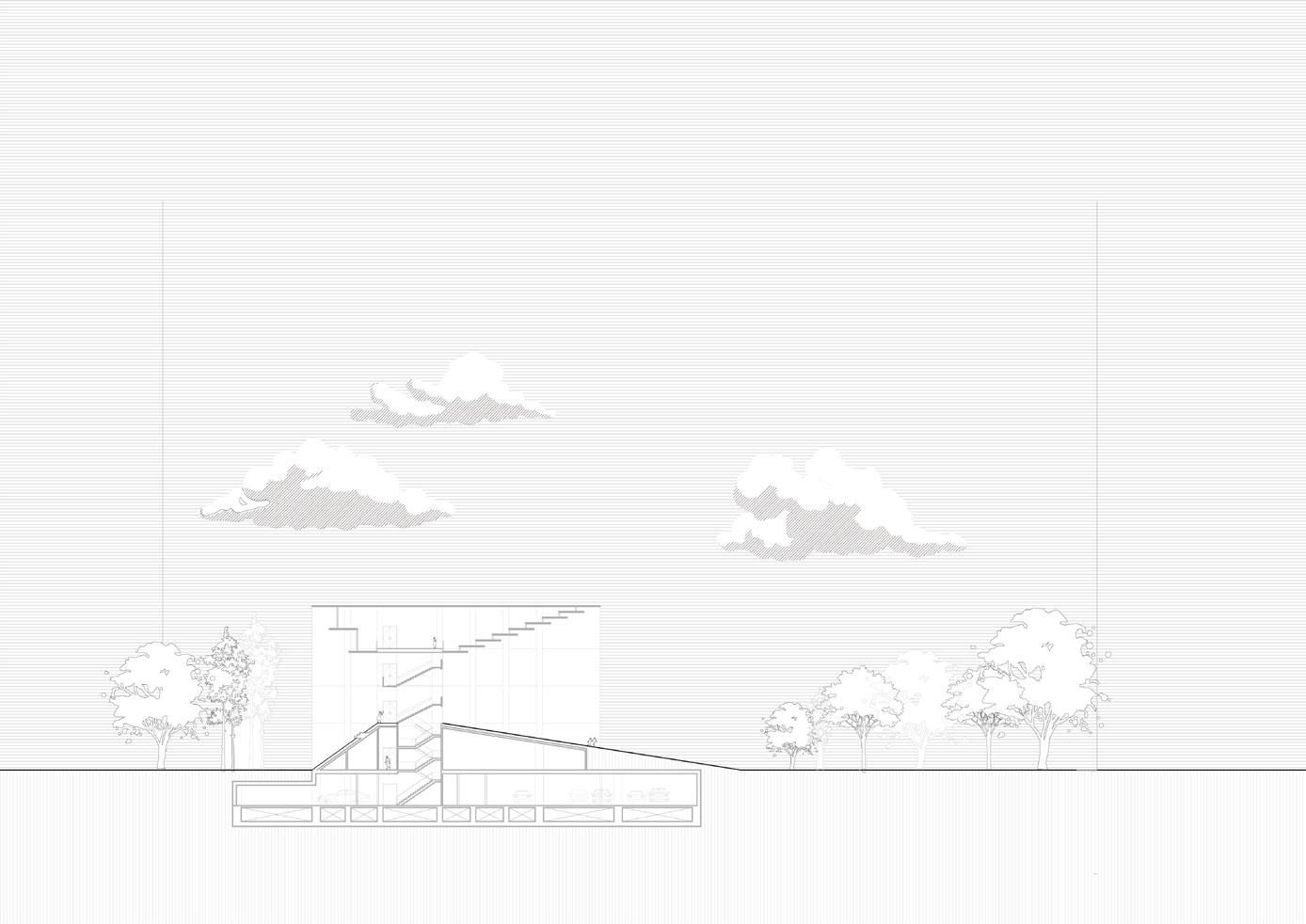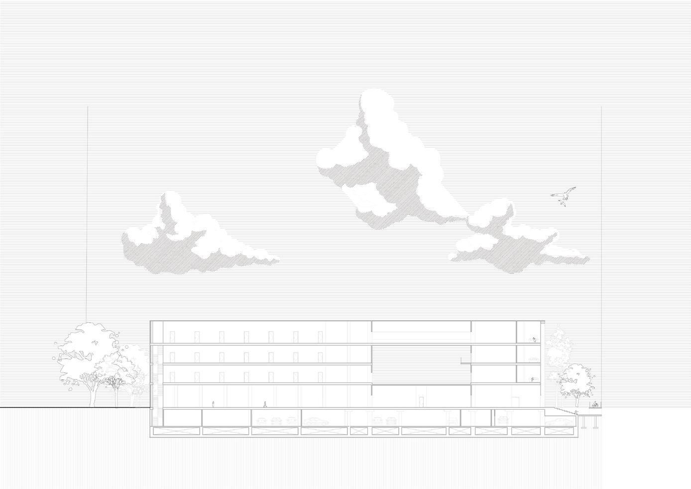 In the campus, students rush past, and the school gate becomes a focal point of pedestrian flow. Along this axis, a building quietly stands, serving as a place for students to live and learn. However, at first glance, it does not attract attention, like a silent giant rock. Pedestrians pass by it, often without taking the time to examine its structure and form.