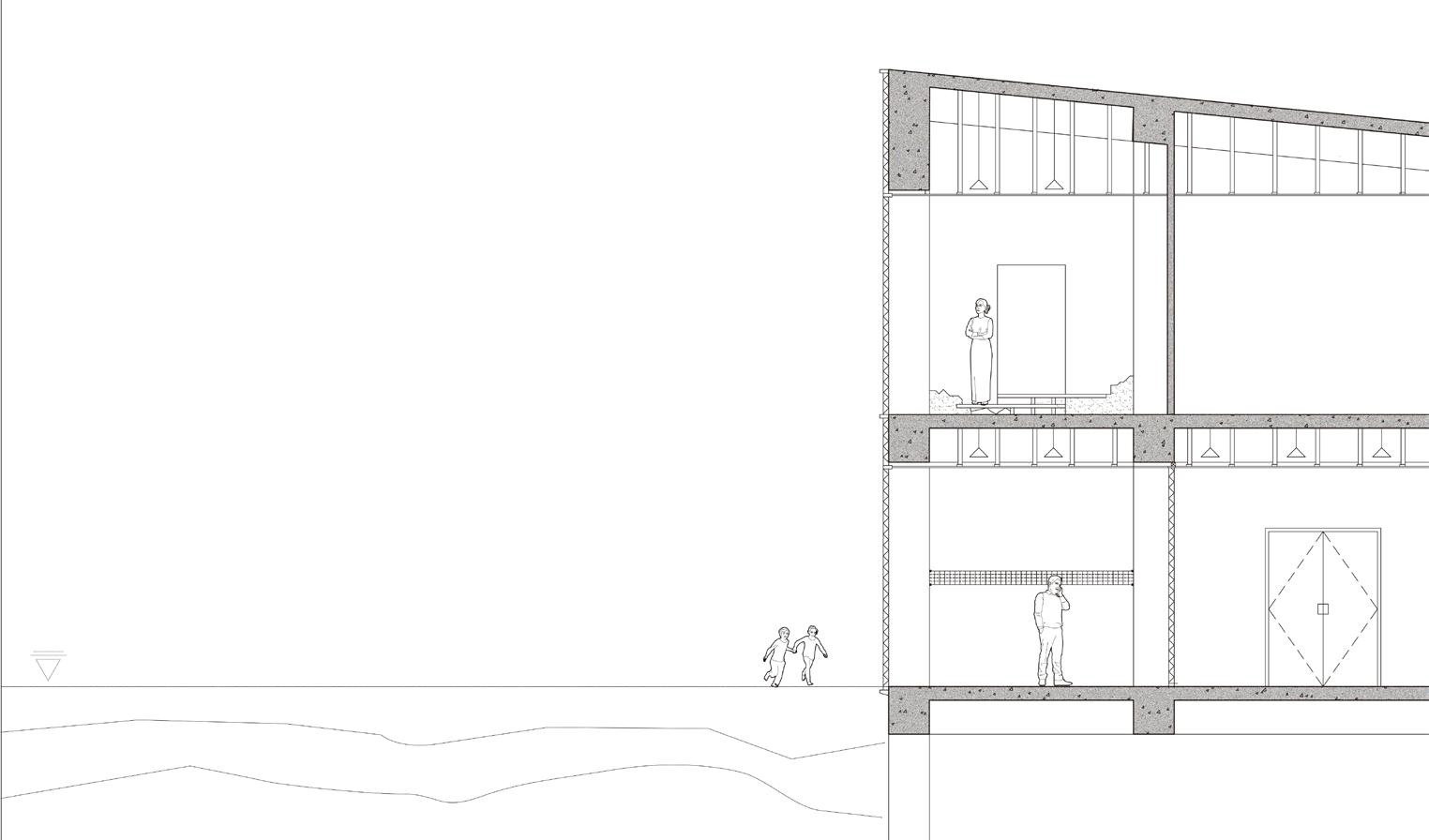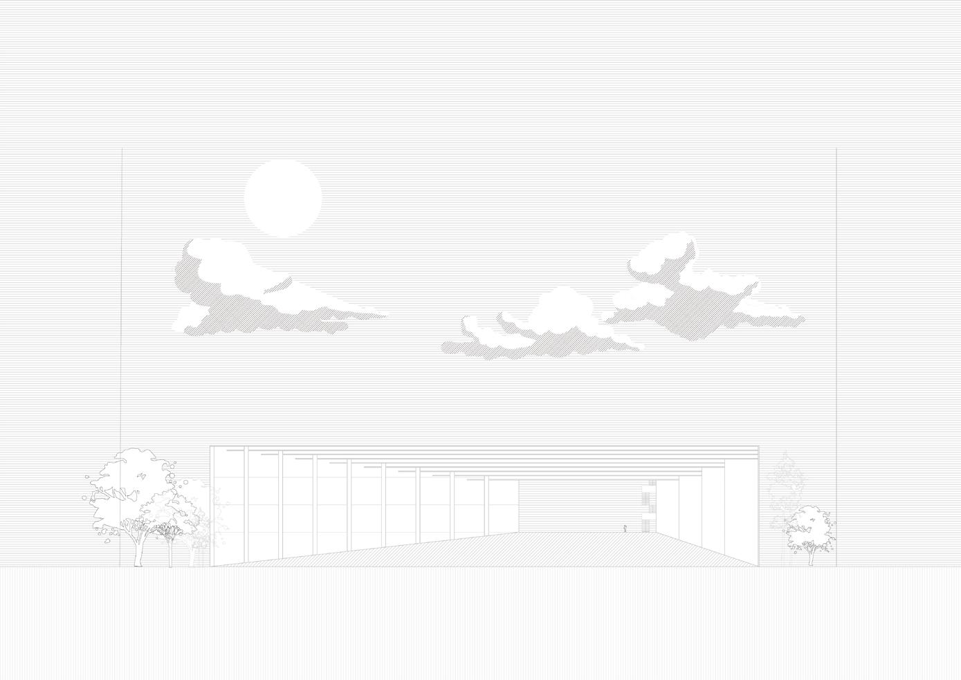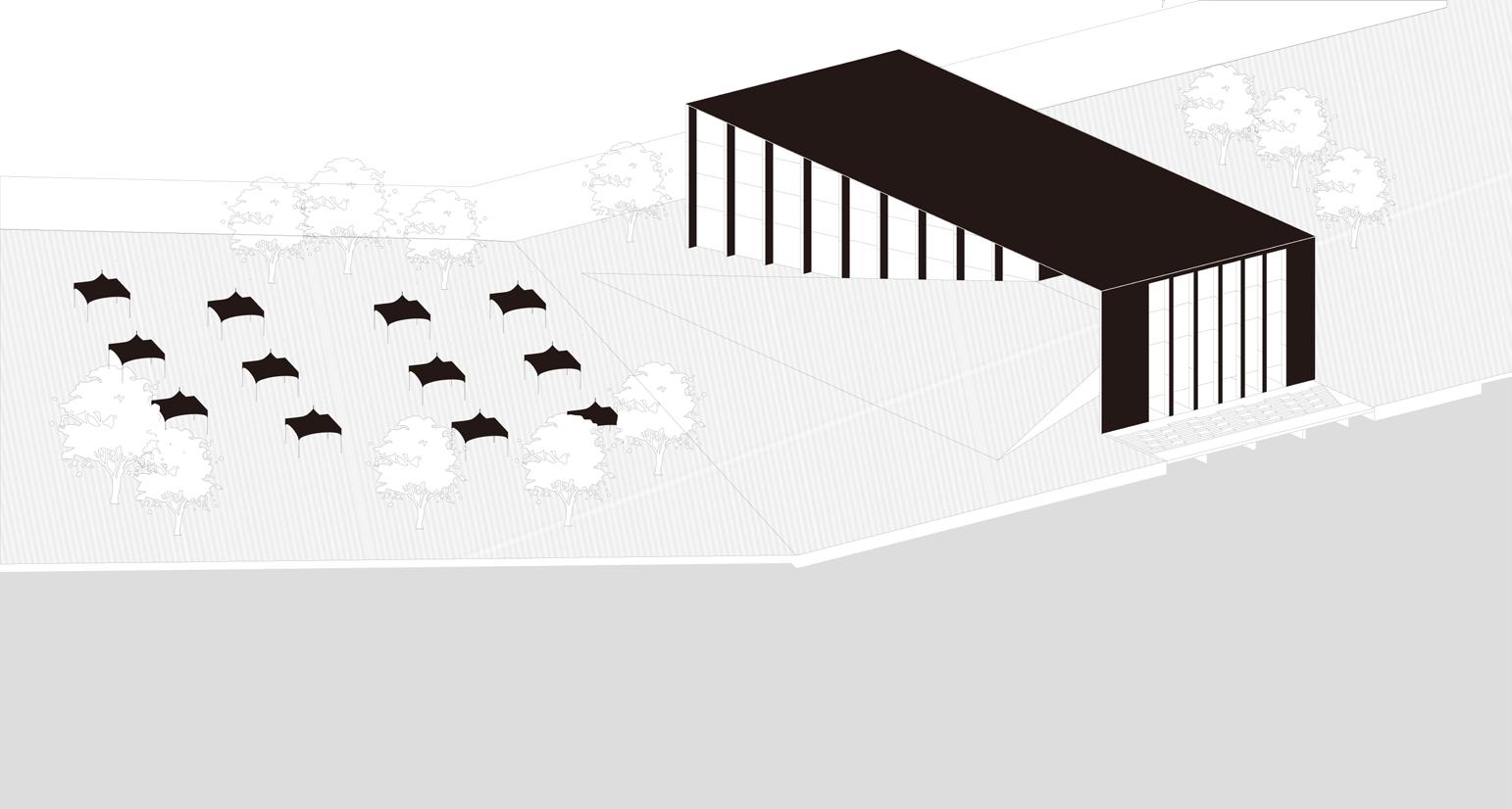 However, when you slow down or look from afar, the true face of the building gradually emerges. A grid structure divides it into various areas, forming diverse spaces. And most notably, the design on the roof catches the eye. Up close, you might overlook its presence, but when you look from afar, you'll notice that the roof is no longer just a monotonous surface; it's endowed with freedom. It's no longer just a structure sheltering from the elements, but a space for students to unleash their creativity.
