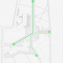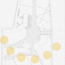 The circulation paths are accompanied by many small pathways that are connected to each other. The low walls that form the pathways are approximately at eye level. The dimensions of the interior of the pathways are designed to be just enough for two people to pass by each other without touching.