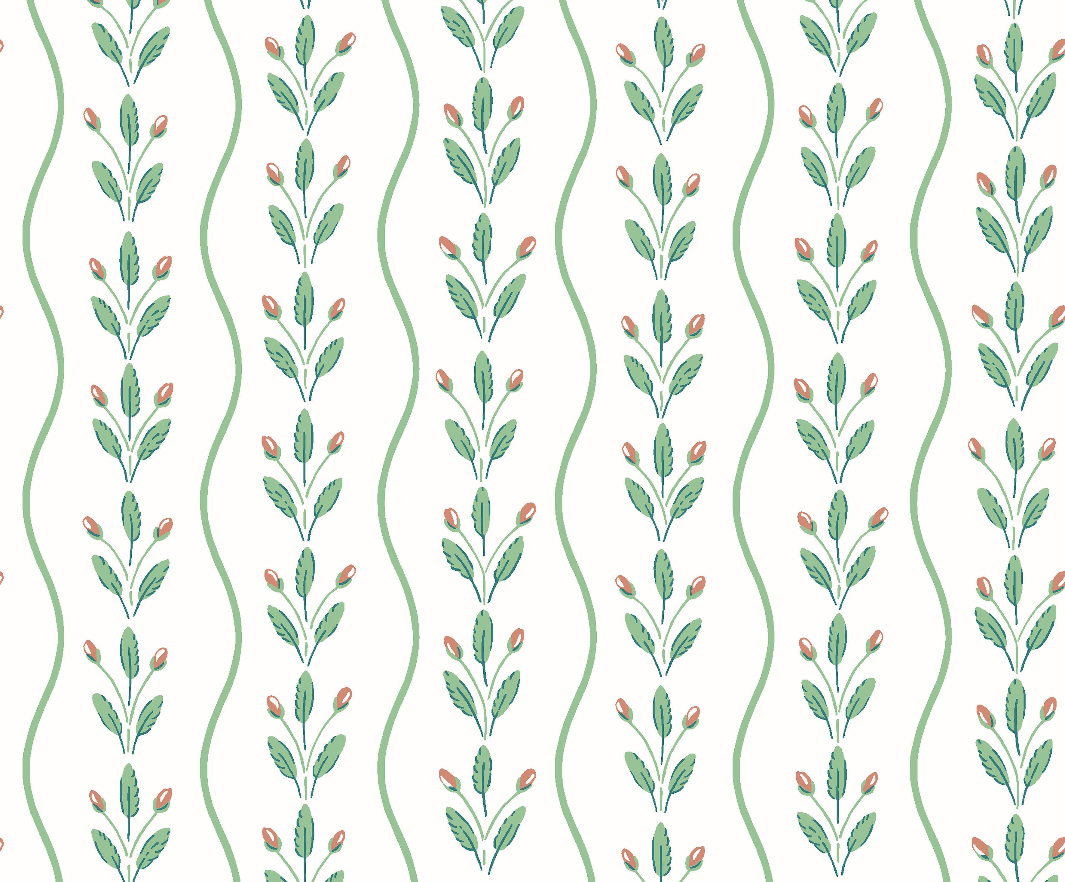 The collection comprises green leaves and floral blooms, as well as small, beautiful stories and geometric elements. Eleven patterns in all, in several colourways. Adorn is a broad wallpaper collection, modern with classic influences.