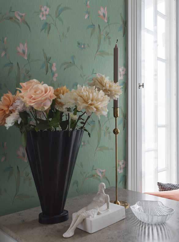 Boråstapeter’s take on Swedish Grace comprises prints from our treasure trove of stunning patterns. There are also new patterns designed by us, inspired by 1920s carpets, tapestries, beautiful cabinets, glass and china. Wallpapers with dancing ginkgo leaves, winding flowers, ancient arches and tales from Roman mythology.