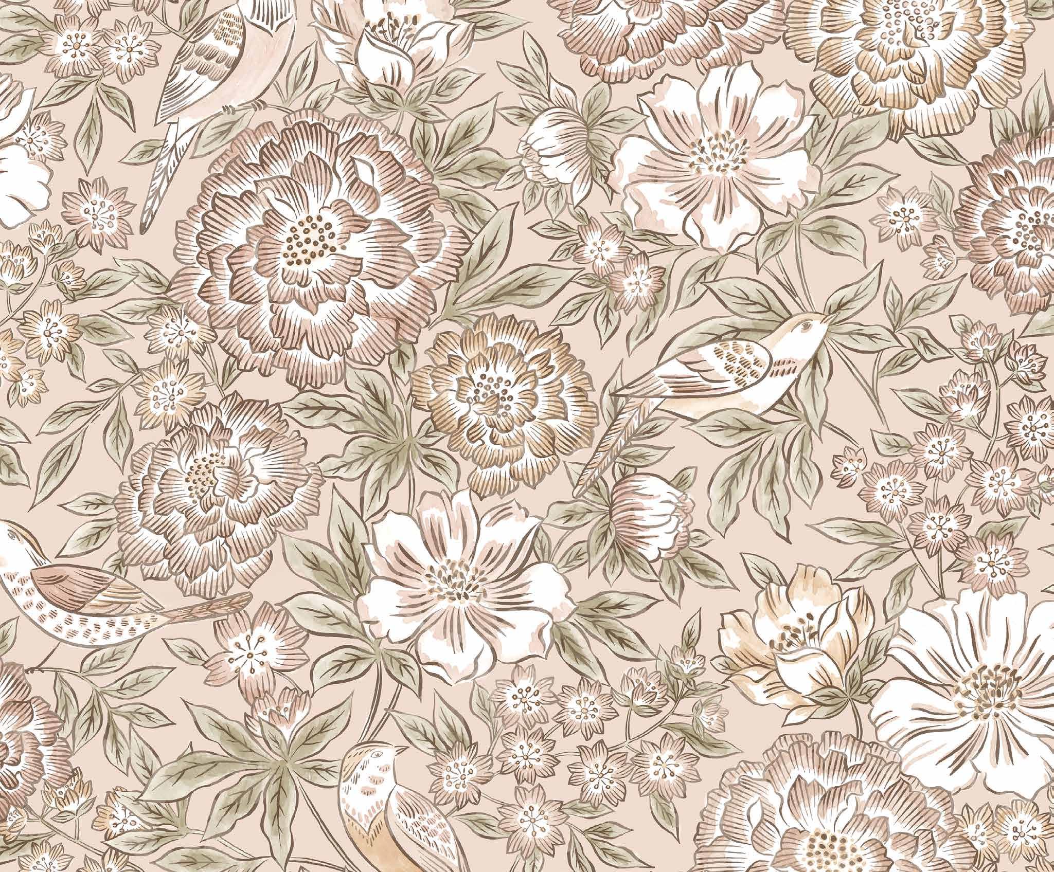 The colours are soft: warm, neutral shades of pink, yellow and apricot, cool green, deep blue, with the occasional shimmer and splash of gold. The collection brings to life one of history’s truly glorious decades, a century down the line. The result is a range of stunning everyday wallpapers suitable for older and modern homes.