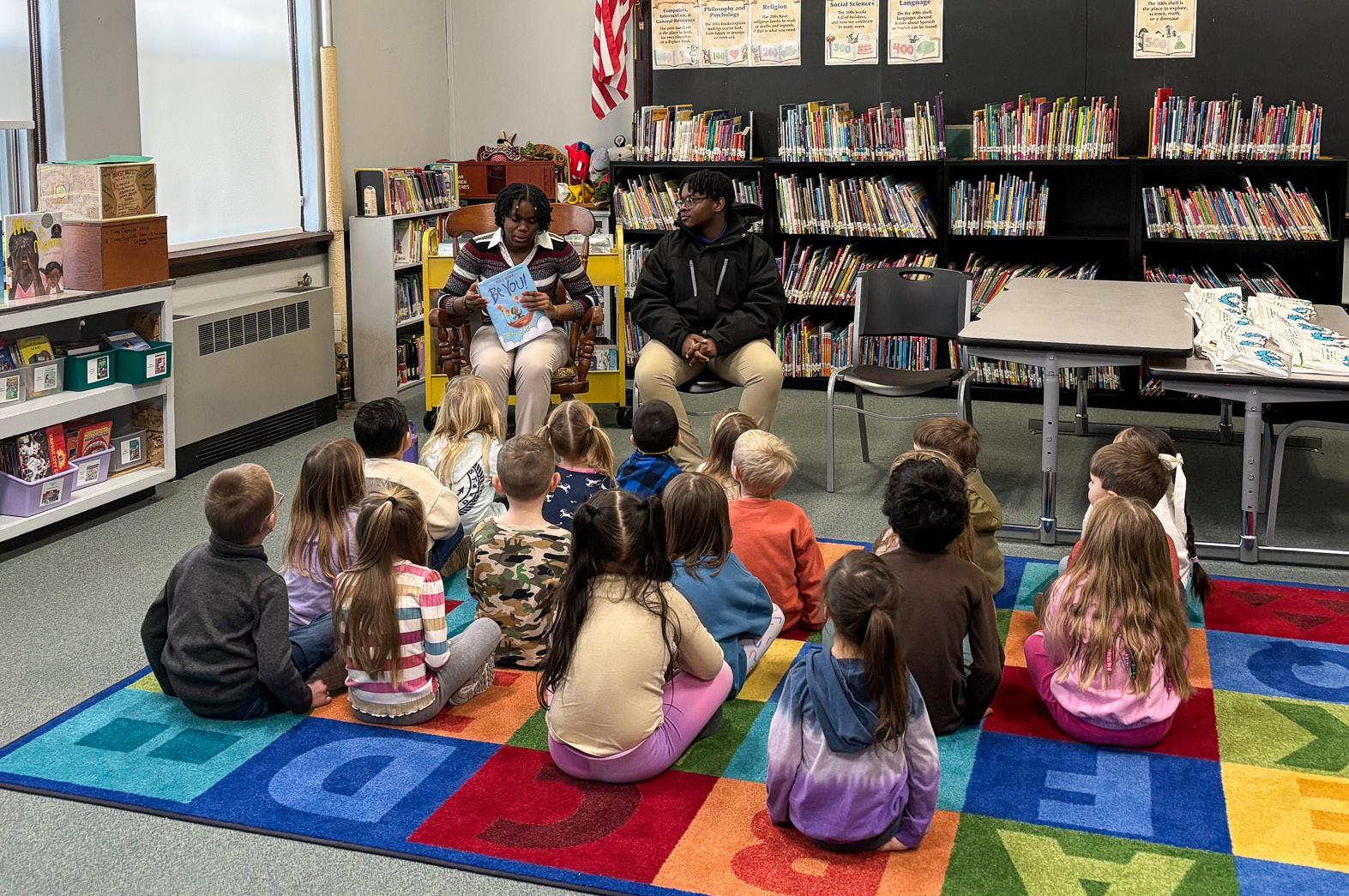 8 Black Student Union (BSU) members read to students at St. Katharine Drexel School every week of February in honor of Black History Month.