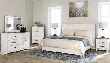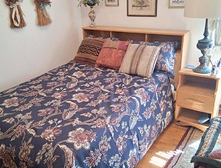5-PIECE SOLID WOOD BEDROOM suite, light finish, bought at Holland Furniture in 1952. 4-drawer chest of drawers, full bed w/bookcase headboard, nightstand, dresser with mirror and stool. $500. Wall and other decorations also available at additional cost. 828-2896114.