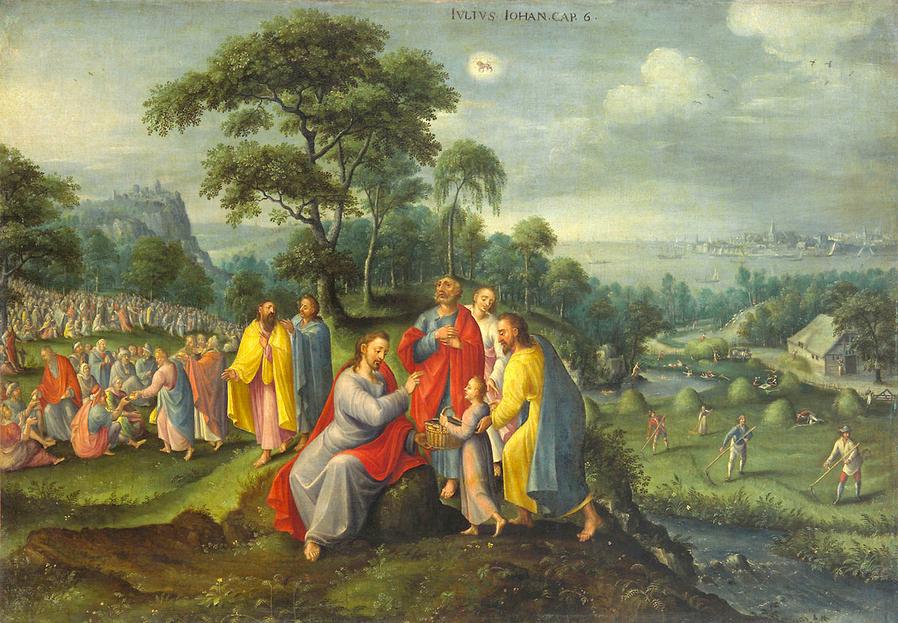 Valckenborch, Marten van, 1534-1612 Feeding the Five Thousand, from Art in the Christian Tradition, a project of the Vanderbilt Divinity Library, Nashville, TN https://digliblibraryvanderbiltedu/act-imagelinkpl?RC=58165 [retrieved March 10, 2026] Original source: https://commonswikimediaorg/wiki/File:Marten van ValckenborchFeeding the Five Thousand (July)jpg