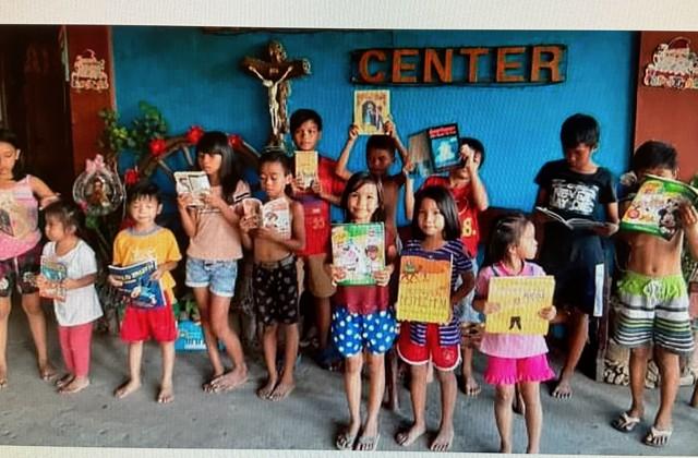 Book Project Volunteers busy sorting, stamping, and packing...