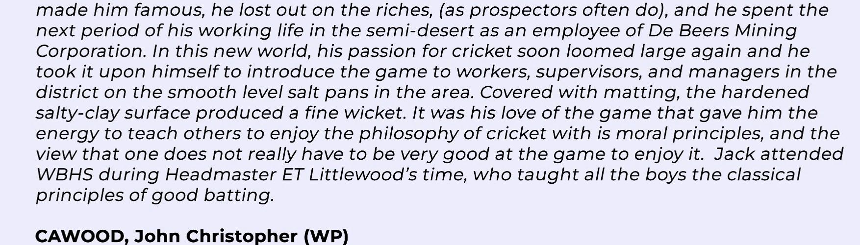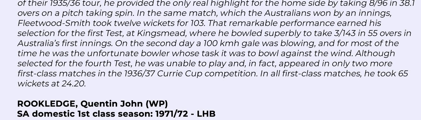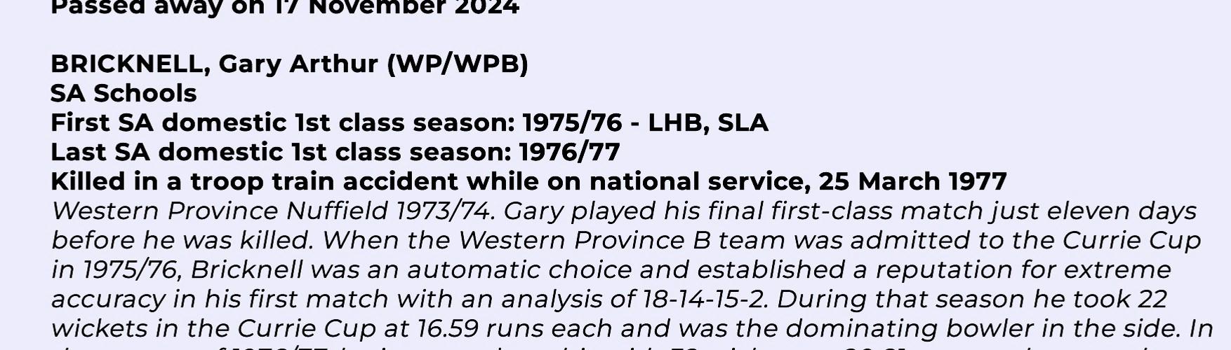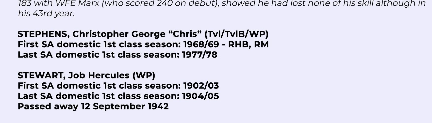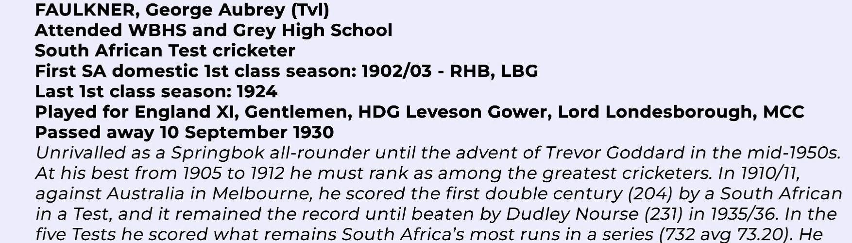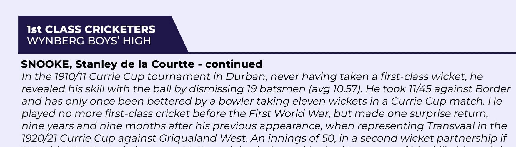 The full list of Wynberg Old Boys who've played first-class cricket, research courtesy Robin Isherwood. Register updated 6 December 2024: Matthew de Villiers debuts; we record the passing of Mike Bowditch; International status added for Jason Smith. #SuperaMoras