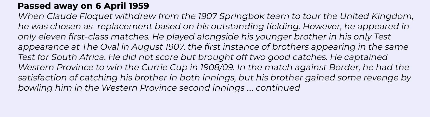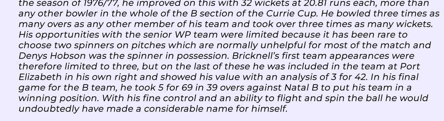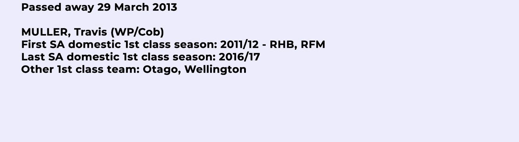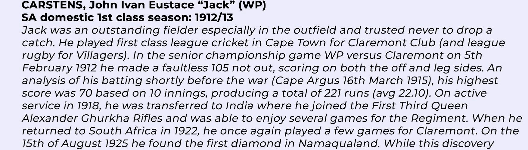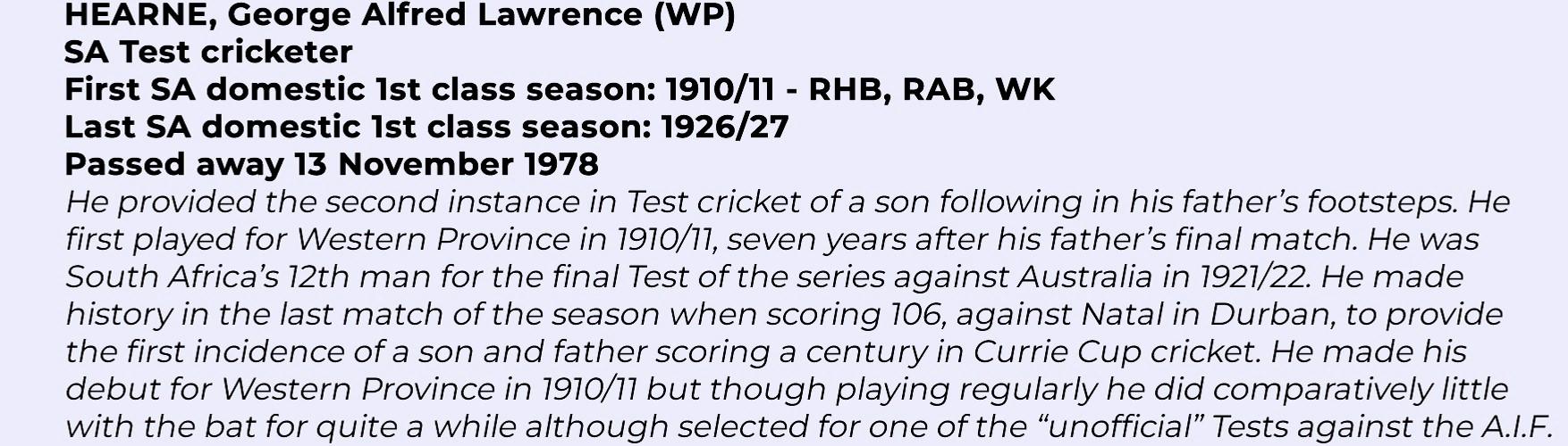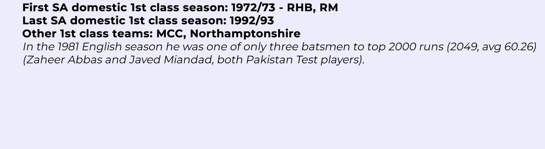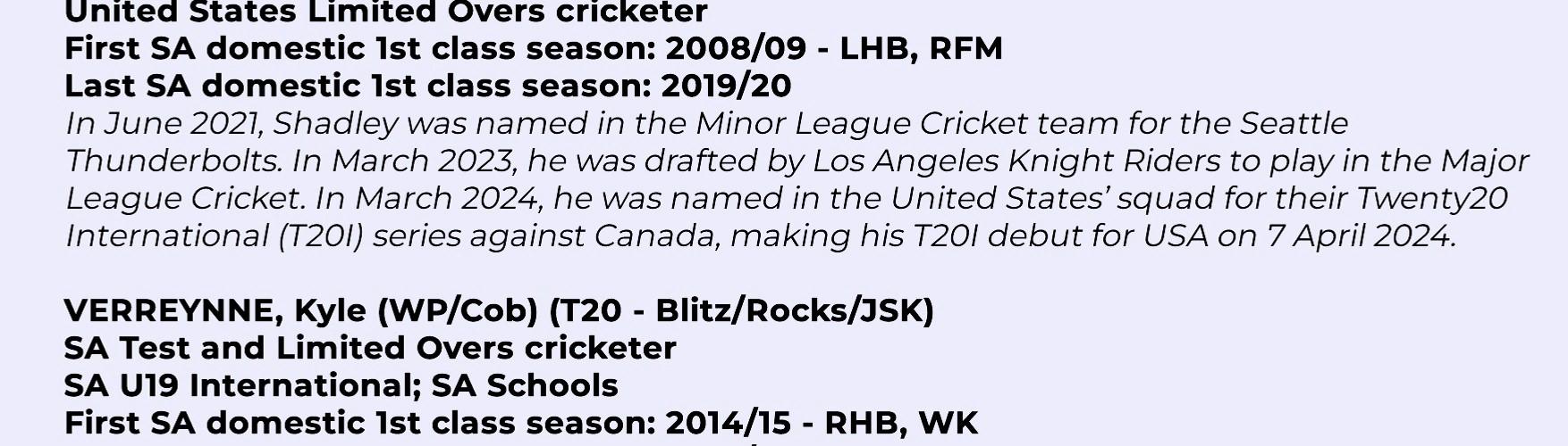 The full list of Wynberg Old Boys who've played first-class cricket, research courtesy Robin Isherwood. Register updated 6 December 2024: Matthew de Villiers debuts; we record the passing of Mike Bowditch; International status added for Jason Smith. #SuperaMoras