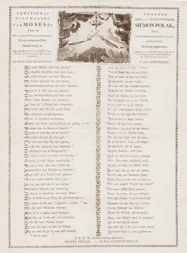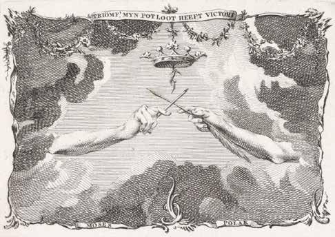 > Op de nieuwjaarswensen van potloodventer Moses Polak kruisen potlood en ganzenveer jaarlijks de ‘degens’, waarbij het potlood vanzelfsprekend wint, ca. 1765.