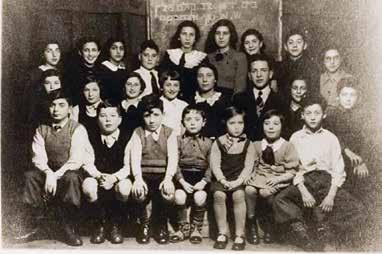 > Klassenfoto van de 6e Montessorischool in de Niersstraat in de Amsterdamse Rivierenbuurt. De school heeft veel Joodse leerlingen en wordt later vernoemd naar Anne Frank, die daar tussen 1934 en 1941 naar school gaat. Foto door J.M. Bakels, 1938.