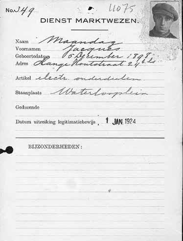 Amsterdammers die dag en nacht zwaar oorlogsleed met zich meedragen is de bekendste handelaar van het Waterlooplein: Jack Maandag (18981977). Hij ziet alle Joden van het plein opgepakt worden, inclusief zijn drie broers en zus, ‘en niemand deed iets!’, zo zegt hij later. Zelf overleeft hij de oorlog vanwege zijn gemengde huwelijk met de katholieke Frederica Ros. Zijn Jiddisje gein houdt hem op de been: volgens de overlevering vertelt hij veertig witzen (grapjes) per minuut!