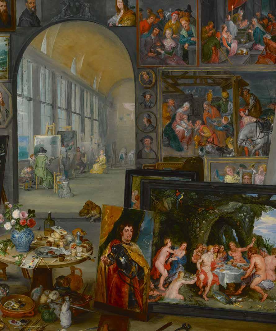 praktijk. Bijna een kwart eeuw later stuurde hij zijn zoon, Jan Brueghel de Jonge, naar Italië om daar levenservaring en artistieke kennis op te doen. In de tweede helft van de 17de eeuw bracht Jans kleinzoon, schilder van stillevens Abraham Brueghel, zijn hele carrière in Italië door, eerst in Rome en uiteindelijk in Napels [afb. 19]. Via een fascinerende speling van het lot is Abrahams aanwezigheid in Italië wellicht verantwoordelijk geweest voor de recente herontdekking van het zeldzame lijmtemperaschilderij van zijn overgrootvader Pieter Bruegel, De wijn van het Sint-Maartensfeest 44