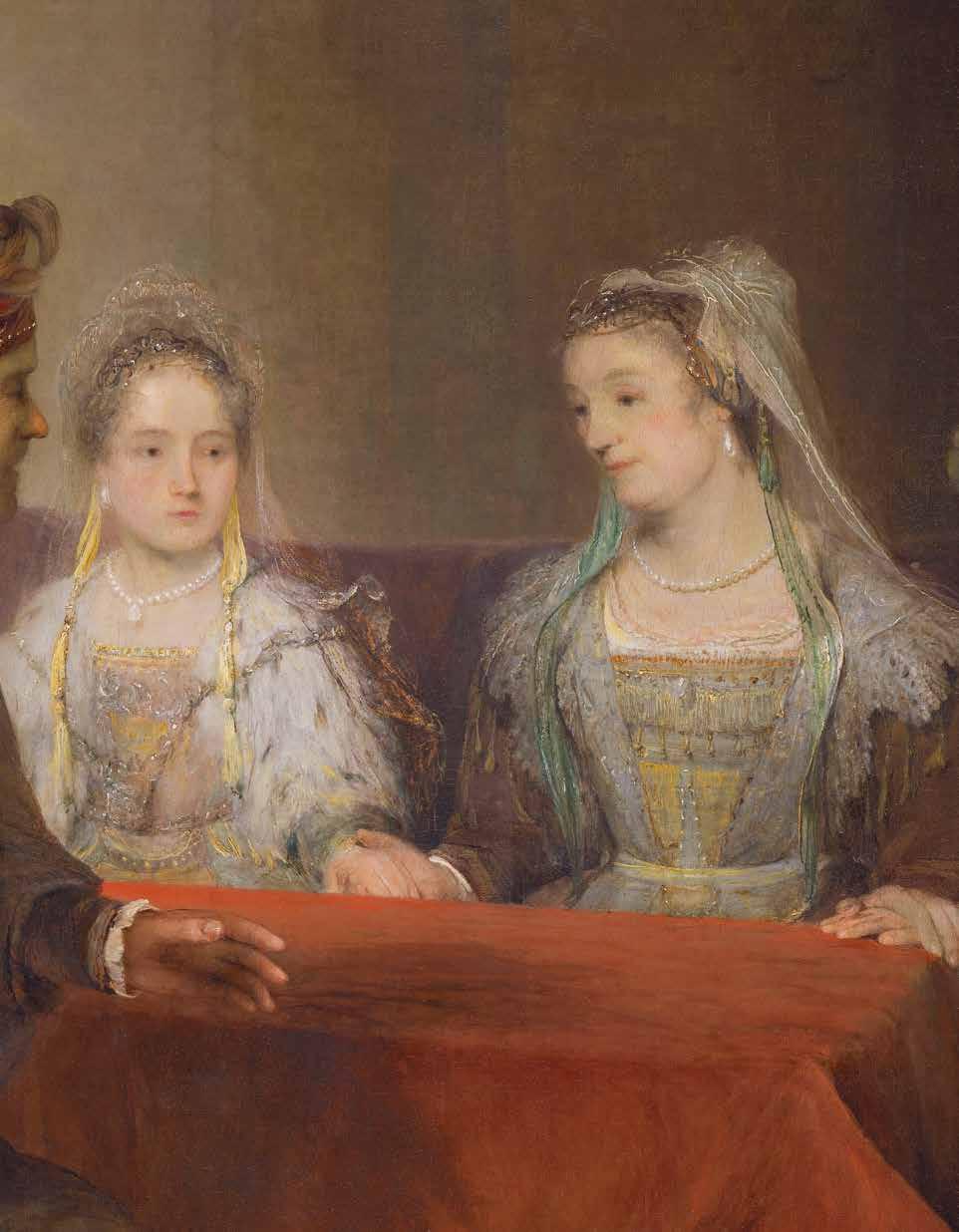 Arent de Gelder was een leerling van Rembrandt in de vroege jaren 1660. Dertig jaar later was de blijvende invloed van de meester duidelijk te zien in dit suggestieve schilderij, zowel in de schraaptechniek met paletmes als in de themakeuze. Net als Rembrandt baseerde De Gelder diverse schilderijen op de Apocriefen, in het bijzonder op het verhaal van de blinde Tobit. Hier focust hij op een moment in het leven van Tobits zoon Tobias, die in naam van zijn vader eropuit trok om zijn familielid Raguel en diens vrouw Edna te ontmoeten. Tobias werd op slag verliefd op hun prachtige en intelligente jonge dochter Sara. Helaas was Sara bezeten door een demon, die elk van haar zeven eerdere verloofden had vermoord. Nadat zijn reisgezel, de aartsengel Rafaël, had beloofd de demon te doden, kreeg Tobias toestemming om met haar te trouwen. De Gelder schilderde een vriendelijk glimlachende Edna die haar dochter toevertrouwt aan de jonge Tobias. Raguel, die we en profil zien, reageert met een vriendelijk gebaar.