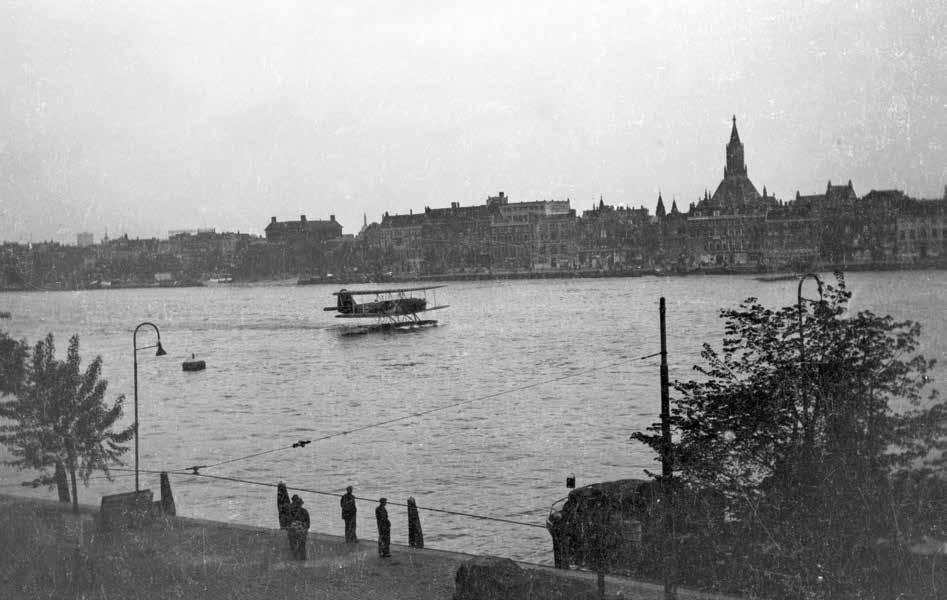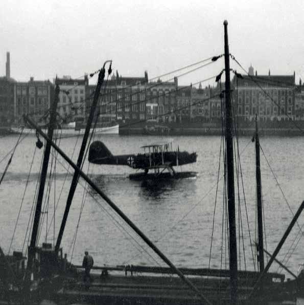 Watervliegtuigen, Maaskade-Westzijde Mevrouw C. Baars fotografeerde graag en goed. Ze maakte onder meer vanuit haar woning aan de Maaskade 97 op het Noordereiland af en toe opnames van de taferelen op de Maas, met grote zeilschepen, sleepboten en kleinere vaartuigen. Er zijn er verschillende van bewaard gebleven. Maar nadat ze op de ochtend van 10 mei 1940 in alle vroegte door het lawaai van bommenwerpers en de doffe inslagen op vliegveld Waalhaven was gewekt, zag ze even voor vijf uur vanuit haar raam een heel ongewoon schouwspel. Op de Maas voor haar huis landden naar het westen toe watervliegtuigen, waarna deze omkeerden en naar de Maasbruggen terug ‘taxieden’. Ze zag