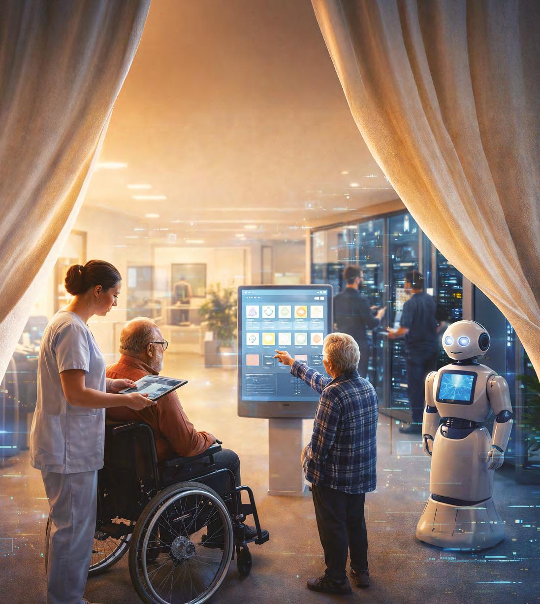 Ein Blick in die Zukunft: Mit Künstlicher Intelligenz ein Titelblatt zum Thema «Digitalisierung und Pflege» generiert.