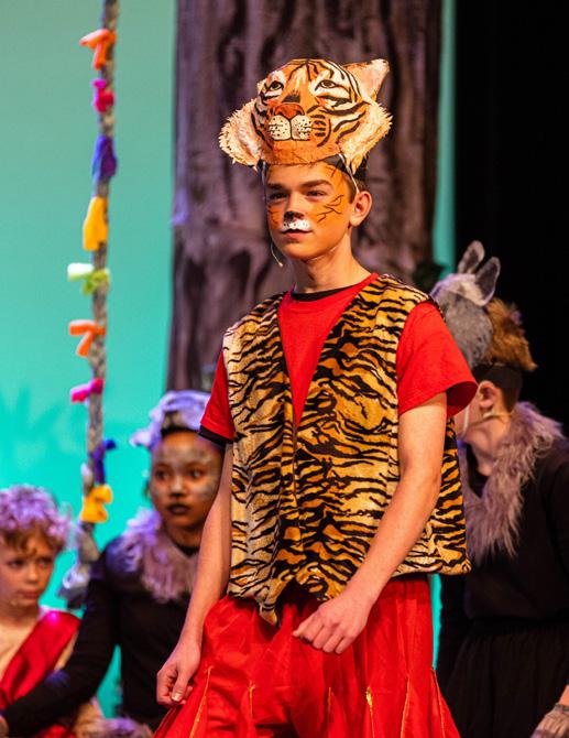 The junior fall play in November was another exciting theatrical performance. An impressive group of students, made up of middle schoolers and freshmen (as well as one third-grader), brought to life The Jungle Book by Joseph Robinette. Based on the book by Rudyard Kipling, the play tells the story of Mowgli—the boy raised by caring wolves. Filled with excitement and humor, the play highlights the struggle of good versus evil, the worth of friendship, and the importance of loyalty and other values for surviving the “law of the jungle.”