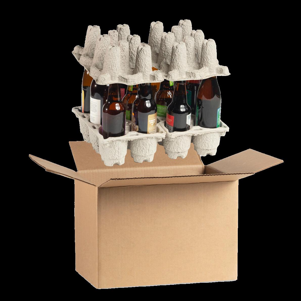Now bottles of craft beers, ciders, alternative non-alcoholic drinks and “splits” of sparkling wine can be safely shipped using a Beverage Can Shipper for the bottom in combination with the new D2C Beverage Bottle Top Shipper.
