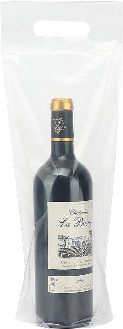They have a generous 3.5” bottom gusset to comfortably hold a standard 750 mL bottle of wine and die cut handles to conveniently carry the bag. A special peel strip inside the bag, once peeled and pressed, will securely seal the unfinished and corked wine bottle. Once sealed, the bag can only be opened by tearing its perforated area, which reveals any tampering.