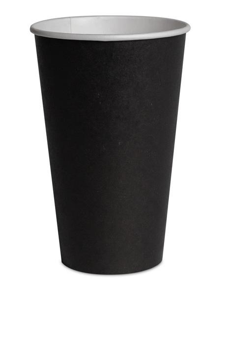 Paper hot cups available in 8-24oz. PE Lined. Available in both black and white with matching lids.